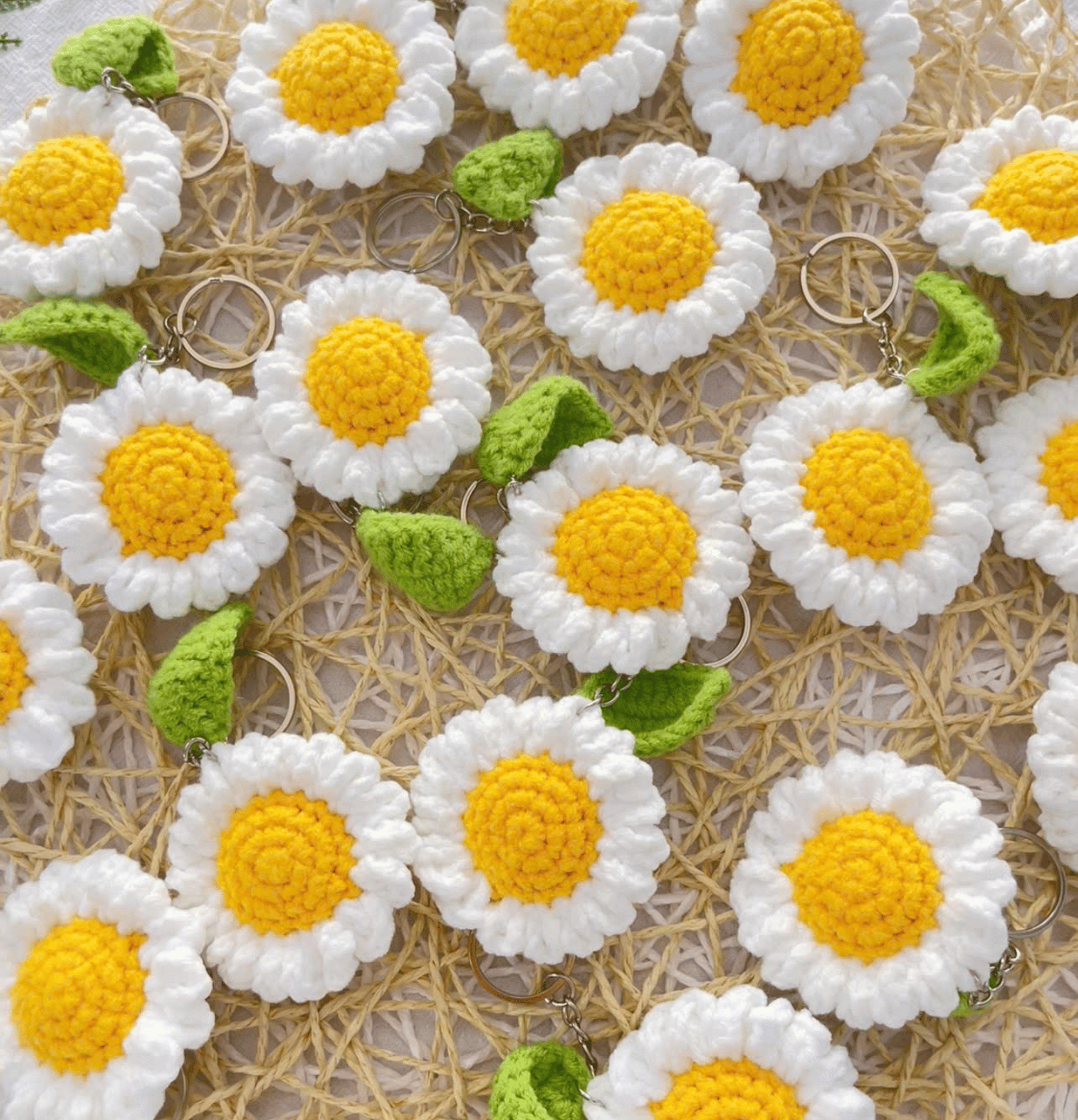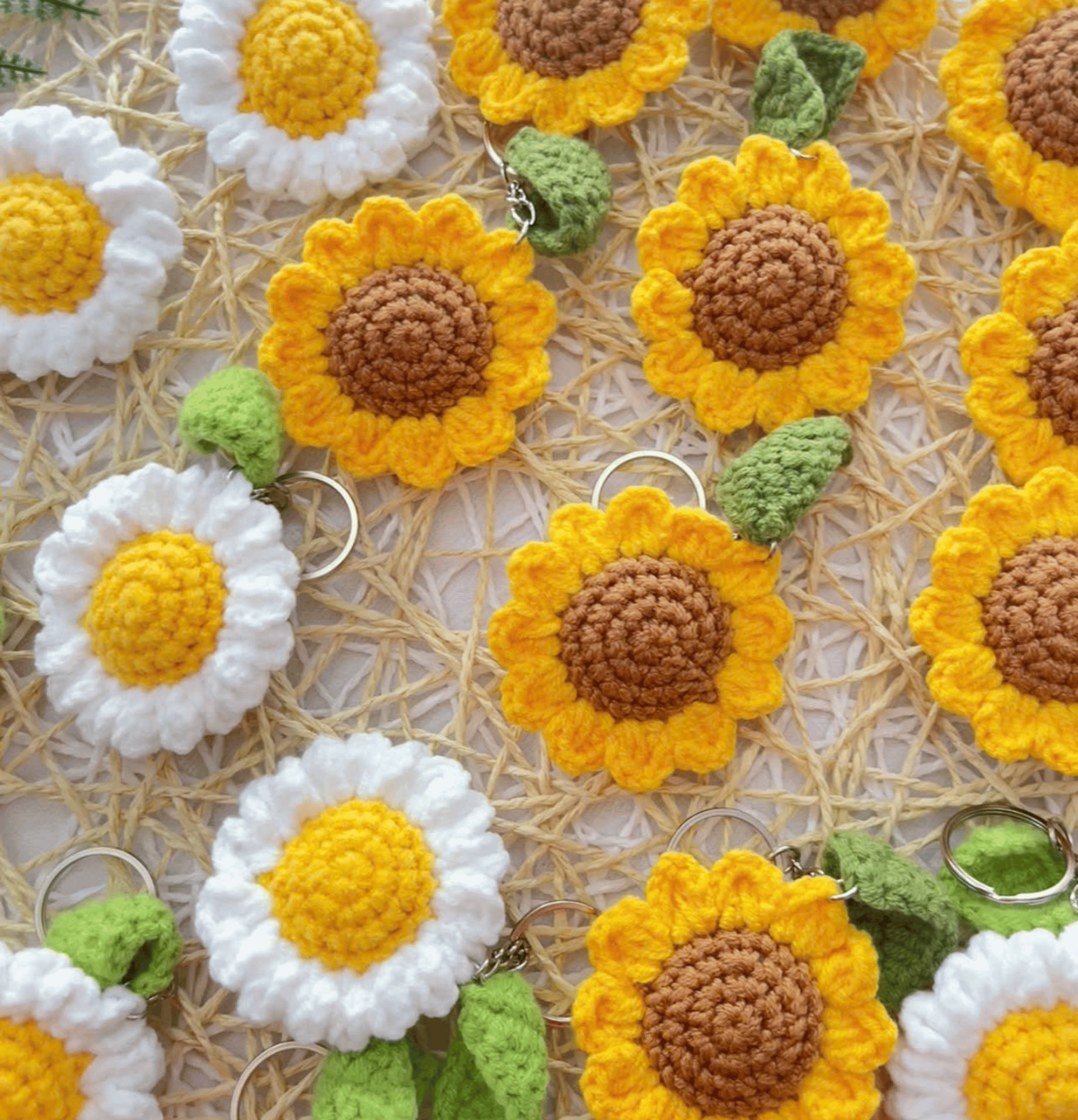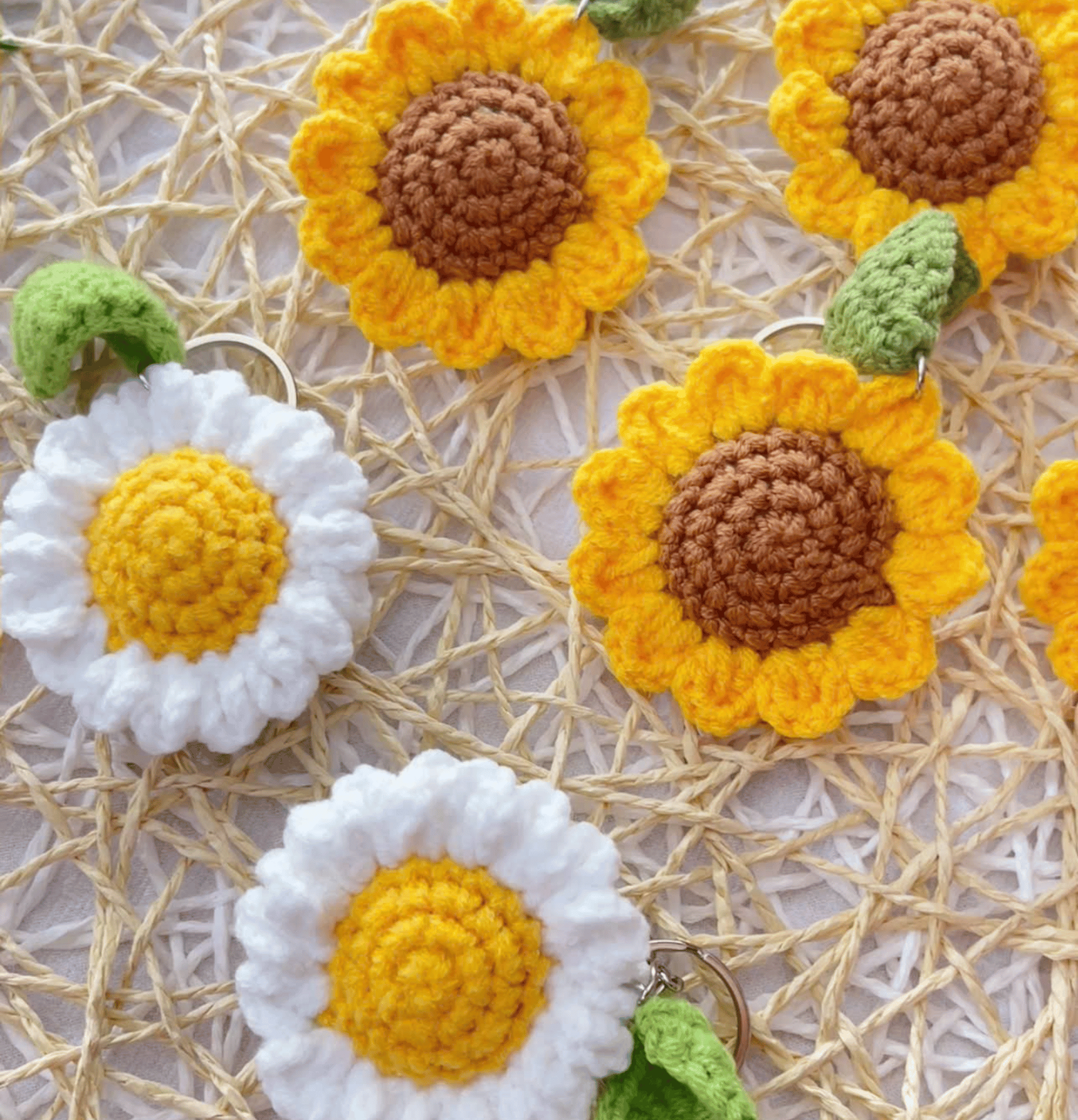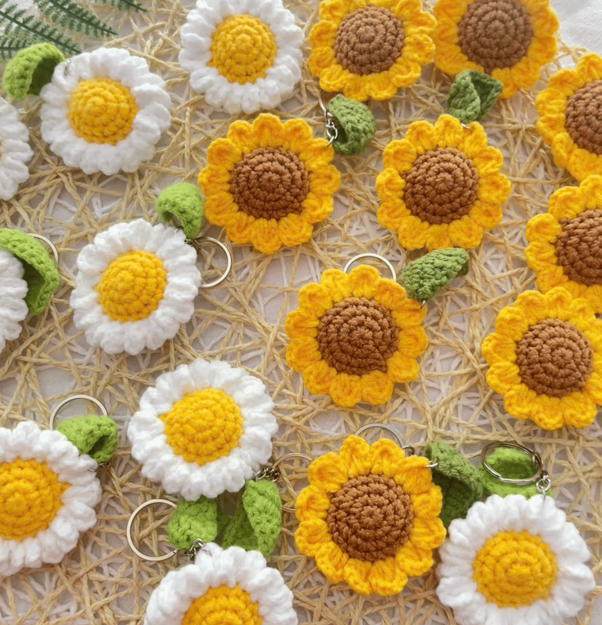 Móc khóa hoa hướng dương, cúc họa mi móc thủ công