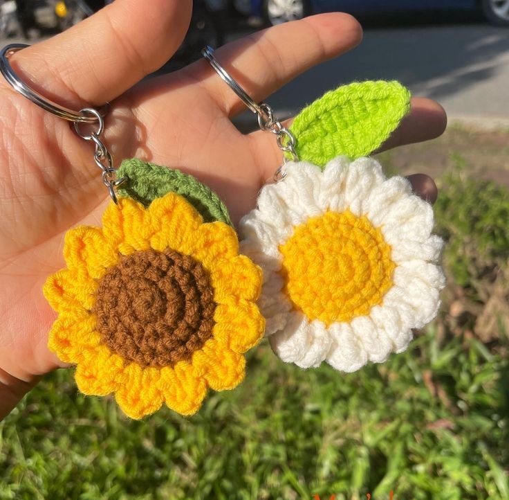 🌼 Móc Khóa Hoa Hướng Dương / Cúc Họa Mi Len – Thủ Công Sáng Tạo, Trang Trí Dễ Thương
